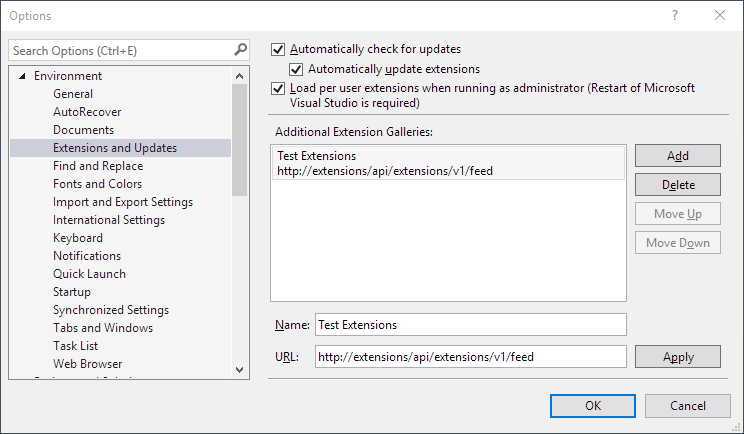For Visual Studio Extensions, these are provided through an Atom feed. Because this is feed-driven, it does open up scenarios whereby we could publish our own Atom feed for our own internal extensions, much like running a private NuGet feed.